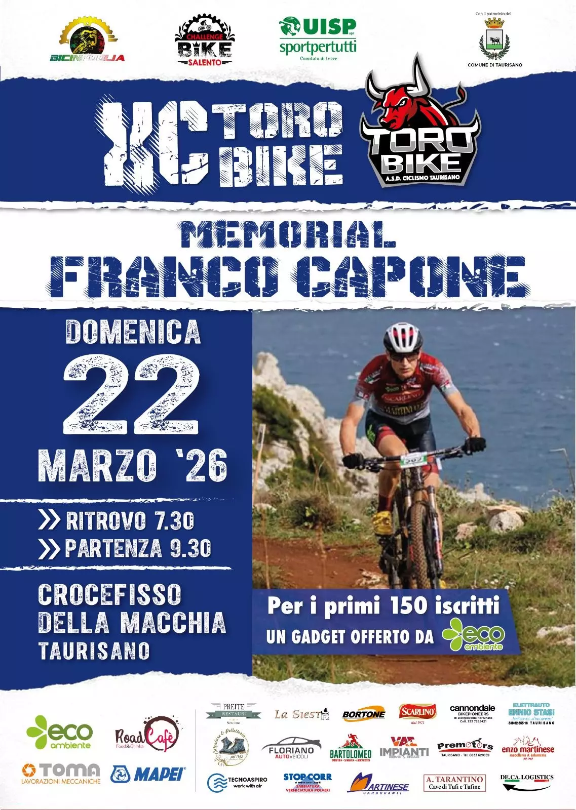 Seconda del Challenge Bike Salento una gara entusiasmante, l’ASD TOROBIKE organizza un tracciato da 7,500 km a giro da percorrere 4 volte per un totale di 600mt di dsl, che prevederà saliscendi e percorsi tecnici con la famosissima salita della CELIMANNA,il reinserimento della salita bianca e un nuovo single track molto lento. Trasferimento e partenza su strada asfaltata a circa 600 metri dall'arco gonfiabile dell'arrivo.